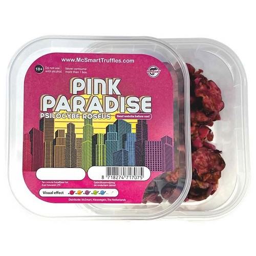Pink Paradise valt in het sterkere segment magische truffels. Wie bekend is met McSmart truffels weet dat er dan gerekend kan worden op kwaliteit en sterke effecten.